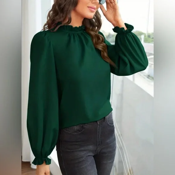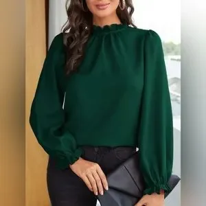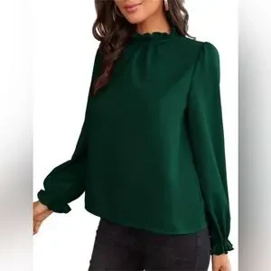 Gorgeous new forest green blouse with lettuce trim on the cuffs and collar. Size 14. NWOT