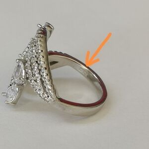 Modern swerve styling. Marquise cut CZ accent stones amid a flow of rows of CZ. The ring has beautiful composition and style balance.