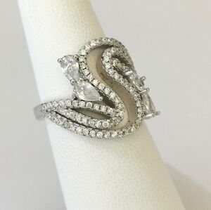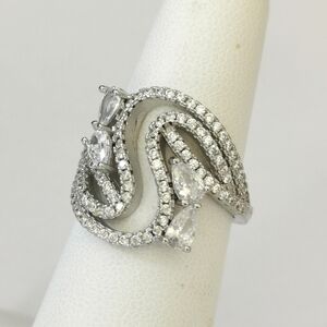 Modernist Swirl Sterling Silver CZ Cocktail Ring Size 6.5