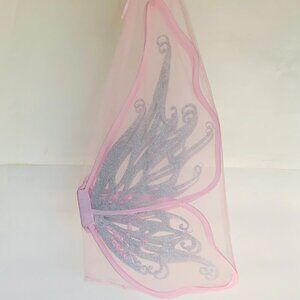 These oversized,lightweight organza butterfly wings have silver glitter detail. The Fairytale Wings are shaped and bound in satin for a dramatic butterfly effect that was made for flying! The ribbon-covered elastic straps offer comfort and size flexibility. These wings are gift-ready in a pink organza bag. These wings are perfectly paired with a stunning Star Wand.
