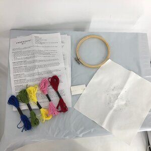 New w/box "Yes She Can" Embroidery Kit Beginners 9.5" circle white cotton Gift