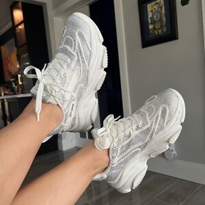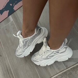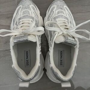 New white Steve Madden sneakers with silver rhinestones size 8M