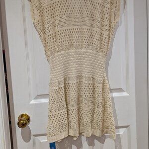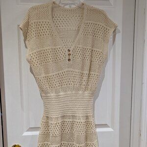 New with Tag - Cupshe Beige Crochet V-Neck Short Sleeve Cover-Up Mini Dress (L)