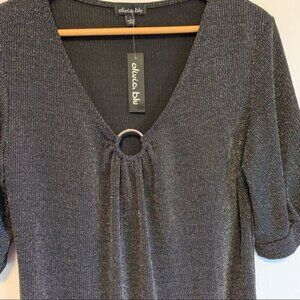New with tag Olivia blu black shimmery v neckline with silver ring top with half sleeves size large women