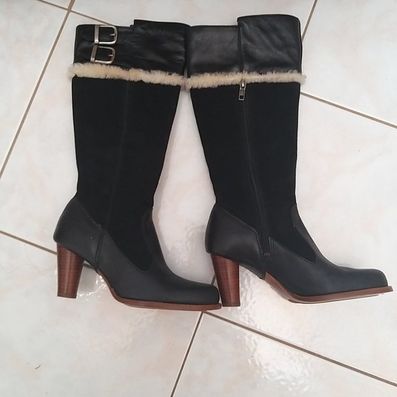 New without Tags Ugg Raya Leather Suede Boots Buckle Black Heeled #5598 …