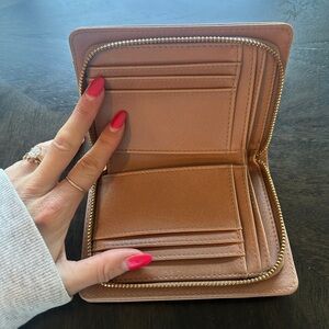 Details: Small zip around accordion wallet with zipper pocket on back. Front slit pocket.
