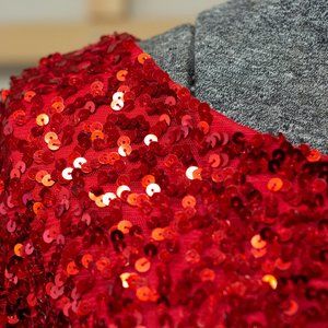 Bought new and never worn. No flaws. Bodice is fully lined, ¾ sleeves are semi-sheer embellished netting. Great dress for a prom or grad afterparty! Looks so good with a leather jacket.