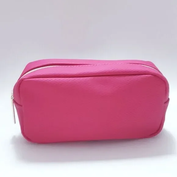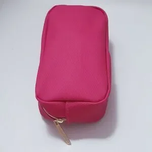 Sweet pink cosmetics bag from Lancôme with a gold metal zipper and pull. Soft touch flocked felt-like lining. Exterior material has a matte rubber sort of feel to it. Washable wipeable waterproof material. Can be used for cosmetic or toiletries or other travel items. Soft lining also lends well to jewelry if you wanted to. Brand new never used. Plastic fill protector still on Lancome nameplate zipper pull.