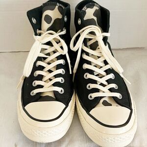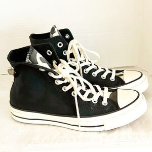 New Unworn Rare Converse Chuck Taylor Black High Cut Sneakers with Cow print tongue Mens 6.5 Womens 8.5