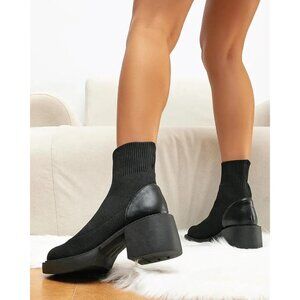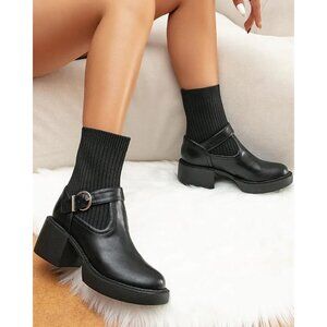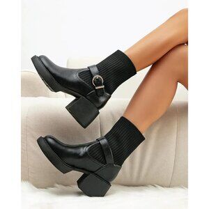 Newbella Women Black Two Tone Strap Casual Non Slip Sole Boot with Arch Support