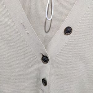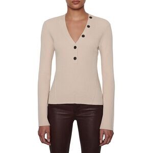 This long-sleeve top is designed with a v-neck with buttons along the side.