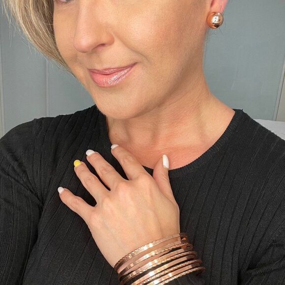 Really pretty rose gold plated over solid sterling 925 silver holding large, pink, man made topaz solitaire with delicate colour and excellent clarity. Sizes 7,8,9,10 available. Please specify size when ordering. Intricately worked setting with small gems. Very fresh, light and lacy, feminine look for those romantic occasions, prom, wedding, date night. Add coordinating pieces from Our Closet (some suggestions shown all listed and priced separately), make a bundle and save. There's always something Fresh at Lemon Squeezy Shop🍋