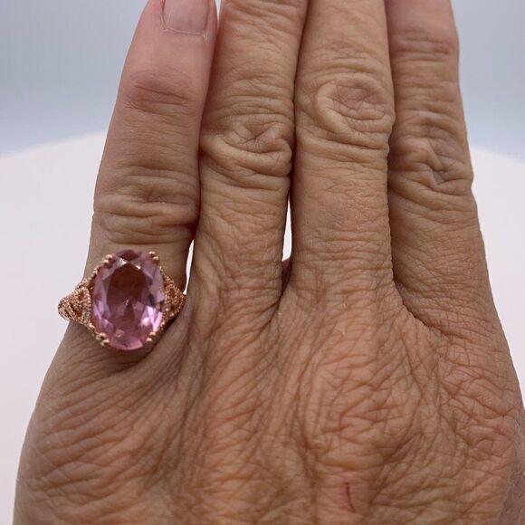 New item, rose gold over 925 silver ring, large pink topaz stone, sz 7, 8,9,10