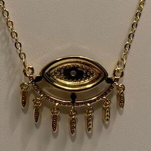 New, no tags, evil eye charm and chain, clear stones and white enamel accents