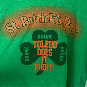 St. Paddy's Day Toledo Does It Right Clover Green Short Sleeve Tee. Crew neck t-shirt in men’s size small. By Next Level Apparel. 60% cotton and 40% poly. Machine washable. Very good pre-loved condition. No visible flaws.