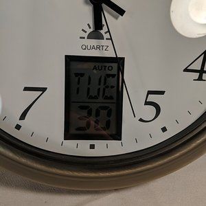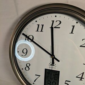 Nexxtech Quartz Analog Clock Digital Date Day Auto Wind Wall Decor Silver 12"
