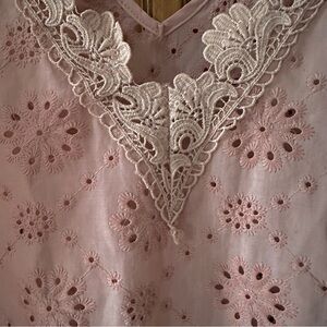 Niay Mauve Dusty Rose Eyelet Lace Trim V Neck Tank Top - Extra Large