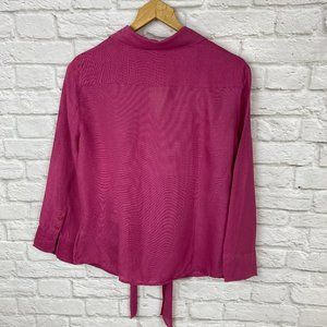 Nic & Zoe Fuschia Pink Linen Blouse with front tie and 5 buttons.