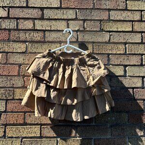 Keywords: Nice Noise skirt, beige ruffle skirt, tiered mini skirt, cottagecore skirt, boho skirt, festival skirt, neutral mini skirt.