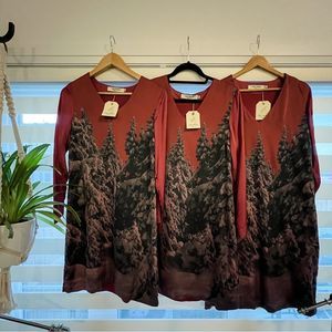The Alpine Valley Dress is made of a light viscose satin, it is super soft and silky. Fully lined. Vneck. Red wine & Charcoal grey or Navy & Emerald. Brand new with tags! Never worn.