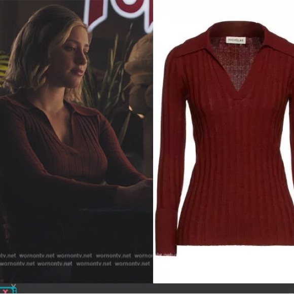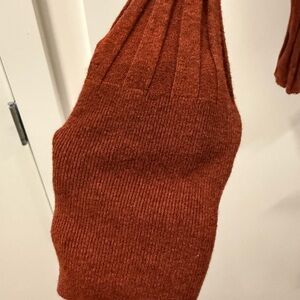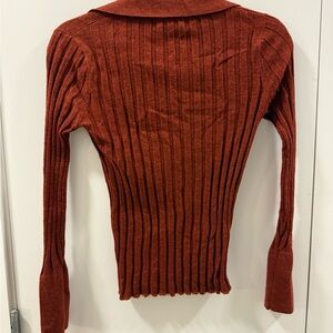 Elegant terracotta knit by Nicholas. Features ribbed texture and classic design.