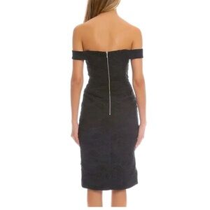 Nicholas Wave Lace Cut Out Off Shoulder Midi Dress Sweetheart Open Slit Black 6
