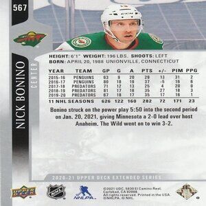 Nick Bonino - 2020/2021 Upper Deck Extended Series Hockey Card