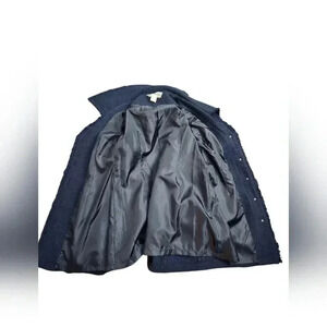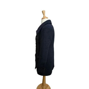 Nick & Mo Pea Coat Navy Blue Dark Academia Whimsy Goth Fringe Wool Blend Size L