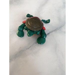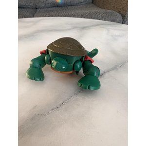 Shell opens up on the back and limbs can be exchanged to appear more turtle like