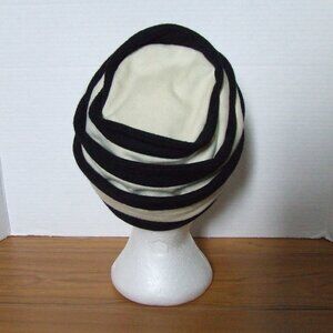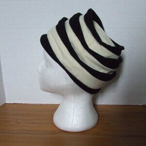 Nicola Gebhard beehive style hat. Size 56cm. Black and white stacked fleece material with polyester lining. There are not any tears, holes or stains. Very good, gently used condition.