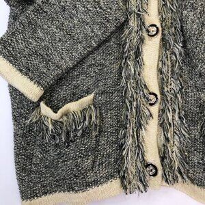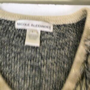 Nicole Alexander Boucle Sweater Jacket Cardigan Knit Buttons Pockets Metallic L