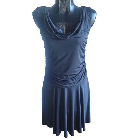 Nicole Benisti Black Sleeveless Draped Neckline Dress M