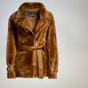 Crafted from genuine shearling, its opulent shell is complemented by a contrasting leather tie-belt that cinches the waist elegantly. With buckled cuffs, a signature detail of Nicole Benisti, this jacket embodies warmth and fashion in perfect harmony.