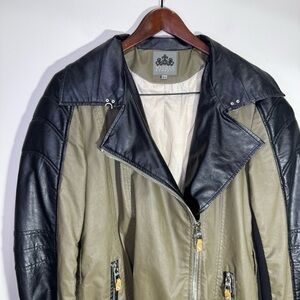 Nicole Benisti Green & Black Faux Leather Moto Biker Jacket Size XL