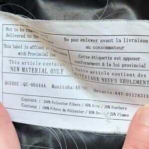 Material: Content: 100% Polyester Fibers. 80% Down, 20% Feathers.
