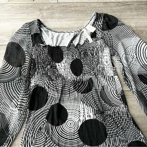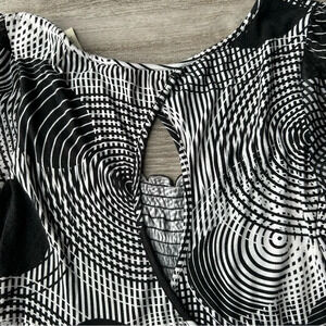 Nicole Benisti Polka Dots Sheer Sleeve Cutout Back Stretch Dress