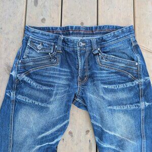 Nicole Club Jeans Men's Blue Denim Distressed Straight Leg 5-Pockets Medium Wash.
