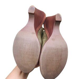 Nicole Lotus Peep Toe Leather Olive wedge Sandals Women size 9.5