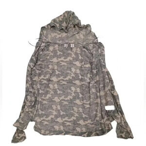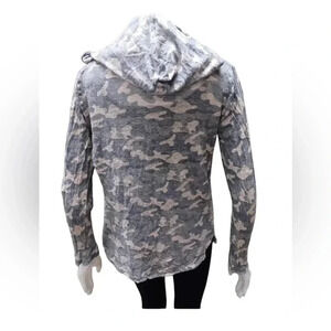 Nicole Miller 100% Linen Camouflage Open Cardigan With Hood Size Medium