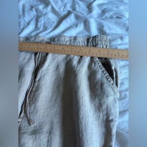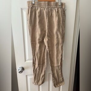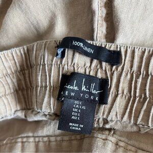 Nicole Miller 100% linen tan pull on pants large ankle buttons drawstring