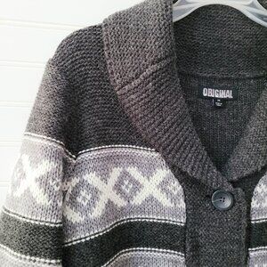 Original Nicole Miller, shades of gray, fairisle, shawl collar, pockets