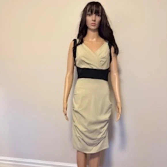Elevate your wardrobe with this stunning Nicole Miller Collection dress, featuring a timeless black and beige color palette. This elegant piece blends sophistication with a flattering silhouette, perfect for cocktail parties, formal events, or an upscale dinner date.