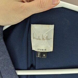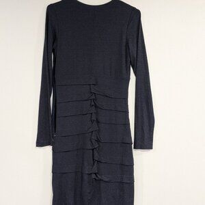 Nicole Miller Deep V-Neck Tidal Pleated Dress Navy Blue Size Medium