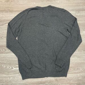 Nicole Miller New York, Gray with silver threading threw out sweater. Button down front with silver accent buttons. Ribbing on neckline, cuffs, and waist.