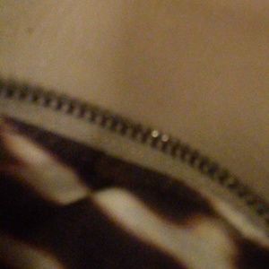 Nicole Miller Grey Leather Handbag, with animal print inner liner and a flop fold top style opening. All items come from a clean pet and smoke free store, and next day Shipping.