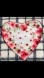 This set of 4 placemats have pink and red rose floral print, scattered red hearts on them with red pom-poms around the edges. Back is white satiny finish fabric.