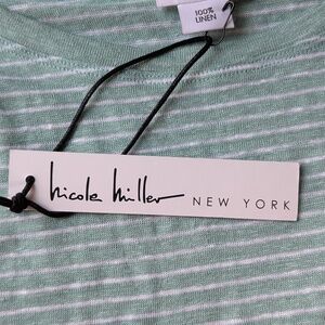 Nicole Miller Light Blue Striped Short Sleeve Top