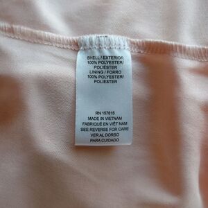 Chic dress with abstract design. Features orange, black, and cream tones.