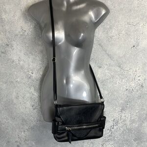 A Long adjustable shoulder strap with Zippering details, gives this bag Moto Style.