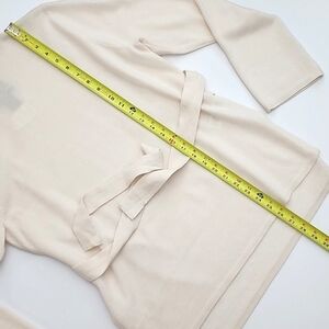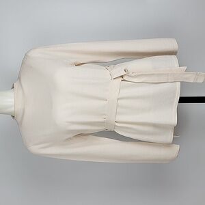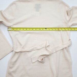 New with tags, Nicole Miller New York long sleeves mock neck belted sweater top in cream 100% extra fine merino wool, size large.